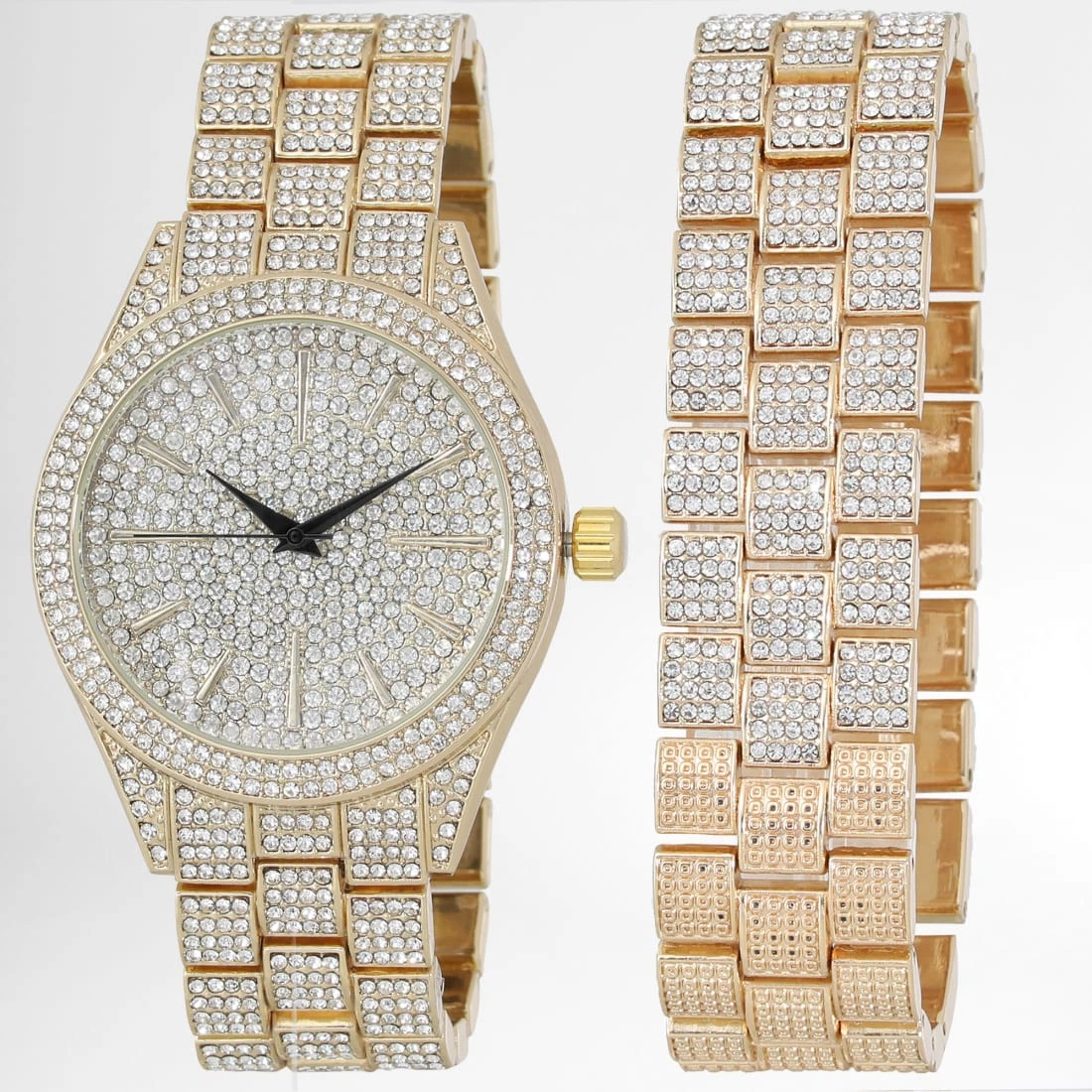 • Boîtier en acier inoxydable serti de strass