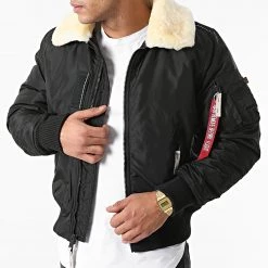 Offres 🛒 Bomber Col Mouton Injector III Noir de Alpha Industries 🥰