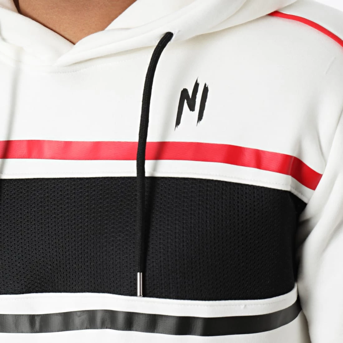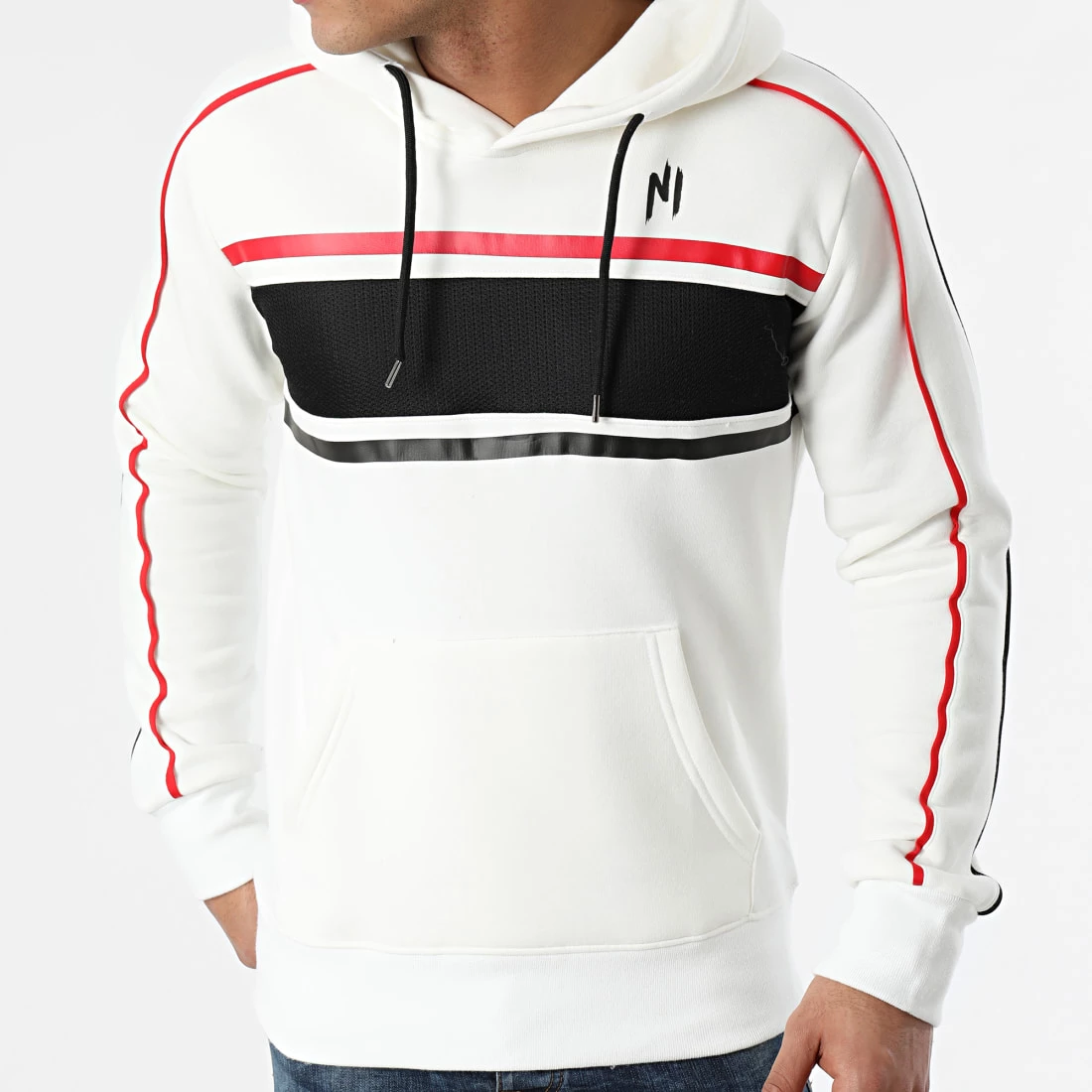 • Sweat zippé tricolore imprimé NI avec liseré le long des manches