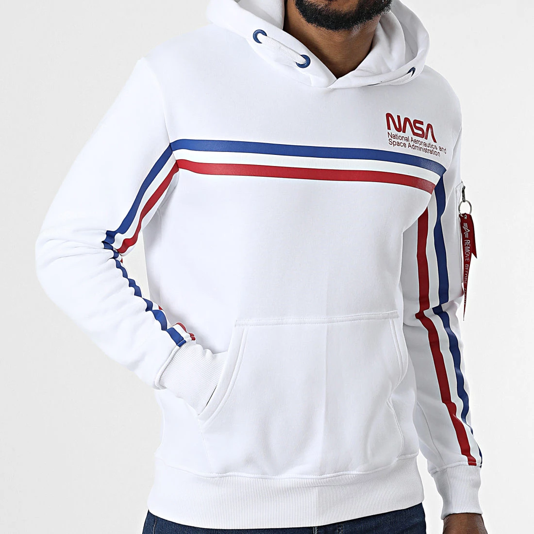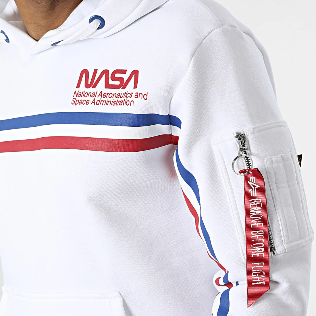 Nouveau ✔️ Sweat Capuche NASA ISS 118332 Blanc de Alpha Industries ⭐